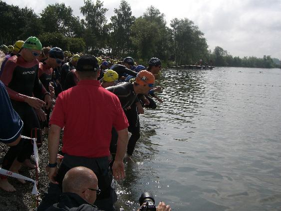 Naja soweit so gut, die Form stimmte ja, aber das Gefühl vor dem Start, gerade mal eine Woche nach dem Schliersee-Triathlon, war dann doch nicht so gut, da ich mir nicht sicher war ob die Akkus bis zum Ziel durchhalten würden. Aber gut, sagte ich mir, wenn gestartet wird gibts keine Ausreden und ich motivierte mich bis zum Startschuß wieder richtig und versuchte alles zu geben.