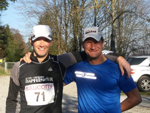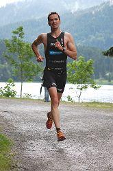 Der Wechsel in die Laufschuhe gestaltete sich dann etwas schwierig da in den Füßen kaum Gefühl von der Kälte war und diese nicht so wollten wie ich. Aber die Laufschuhe erstmal angeschnallt, ging die Post ab. Auf dem ersten Bergabstück nach Walepp machte ich gleich Tempo und lief was die Beine hergaben und auch die letzten drei Athleten aus meiner Altersklasse wurden geschnupft und ich lag auf Platz zwei in der AK was ich zu diesem Zeitpunkt noch garnicht wußte, ich ließ aber für eine gute Gesamtplatzierung nicht locker und versuchte nicht langsamer zu werden. Als ich Jürgen Metzner vom SC Königsbrunn auf der zweiten Schlierseerunde überholen konnte der eine Startgruppe vor mir gestartet war, wußte ich daß ich gut unterwegs war da seine Startgruppe bereits 7 Minuten vor mir ins Rennen ging.