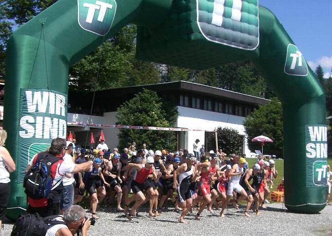 Gestern ging ich beim meinem ersten Triathlon in Kirchbichl in Österreich an den Start, Ralf mein Vereinskumpel war auch mit am dabei und mein Ziel war, eine Top Ten Platzierung und damit ein wenig Preisgeld mit nach hause zu nehmen. Für den Sieger standen 700 Euro zu buche und es war klar, daß einige Profis am Start stehen würden um sich die Kohle zu cashen. Als wir die Starterliste sichteten, vielen uns bekannte Namen auf wie Frederic Kohl, Norbert Langbranntner, Michi Weiß (Vize-Weltmeister in Monaco über die 70.3 Strecke), sogar Starter aus der Schweiz, Italien und Polen waren zu finden. Ich fragte mich Top Ten ???