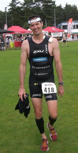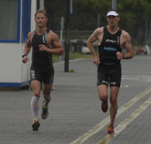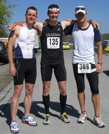Endlich in den Laufschuhen schlug ich auf den ersten 10 Kilometern ein konstantes Tempo so um die 4 Minuten an was mir auch gelang, aber die Beine waren schon ziemlich müde ich lag so auf dem 18 internationalen Gesamtplatz. Auf der zweiten Runde machte dann der rechte Oberschenkel zu und ich mußte zweimal stehen beleiben und Dehnen, so verlor ich gleich zwei Plätze aber der Oberschenkel hielt doch noch weiter durch, die letzten 3 Kilometer mußte ich mich doch sehr quälen um nicht noch weiter Plätze zu verlieren, den die Jungs da vorne können einfach laufen und auch die die noch von hinten kommen saßen mir ziemlich im Nacken, leider kam ein Athlet 5 Sekunden vor mir ins Ziel den ich auch sah und genau der hatte meine Altersklasse so landete ich leider in der Ak auf dem 4 Platz. Wurde aber im Gesamtklassement 14ter was ein riesen Erfolg für mich ist, bei diesen Bedingungen. Also in zwei Wochen steht dann die nächste Mitteldistanz auf dem Programm, auf der Drückerstrecke in Erlangen jetzt heißt es erstmal Beine hoch. Vielen Dank an Carsten, Ekki, Franz und Renate für das schöne Wochenende, bis bald Gruß Tom...