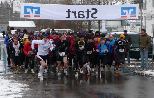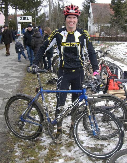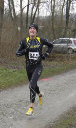 Das Thermometer zeigte 3 Grad und es ging doch ein ziemlich kalter Wind, Um 10.30 Uhr fiel der Startschuß zum X-Duathlon es mußten 2,5 Kilometer gelaufen 12,5 Kilometer geradelt und anschließend nochmal 5 Kilometer gelaufen werden, geradelt wurde mit dem Mountainbike. In die Strecke waren ein steiler Anstieg und ein Dreckhügel eingebaut an dem man kurz Absteigen mußte und das Rad einige Meter nach oben schleppen mußte. Der Untergrund war teilweise Teer und schneebedeckte Wiese.