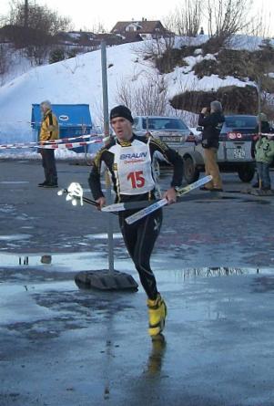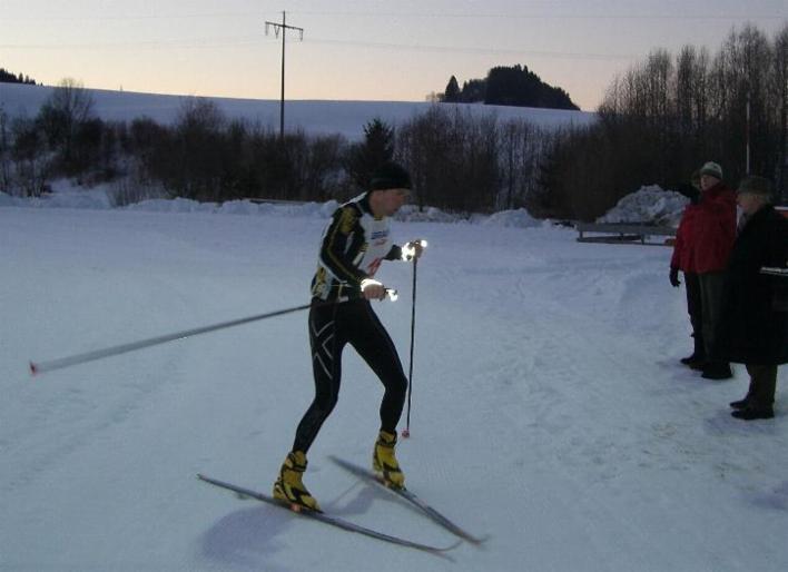 Um 17.30 Uhr fiel dann der Startschuß, Henry Neugebauer und Armin Beyrich meine Vereinskollegen waren auch mit dabei. Zu Anfangs ging gleich die Post ab und der erste Anstieg wurde mit recht hohem Tempo in Angriff genommen. Nach der ersten Laufrunde lag ich so auf Platz 6 und wechselte in meine Skatingskier, dort kamen schon die ersten Probleme. Mit dem Schuh so schnell wie möglich in die Bindung, bei mir konnte man das Wort schnell sofort streichen und ich verlor schon mal wichtige Zeit.