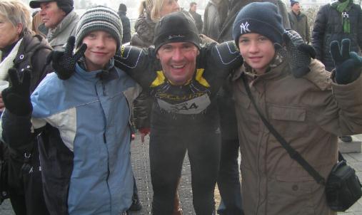 Im Ziel mit Neffe: Fabi links und Tobi rechts