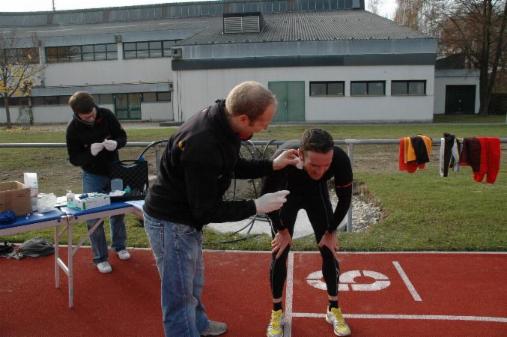 Vier Triathleten aus unserem Verein unterzogen sich einem Lactat-Test auf der Bahn am Sportzentrum Kaufering. Edwin, Richi, Carsten und Ich mußten ein abgestecktes Rechteck von 200 Metern in einer bestimmten Zeit 6 mal durchlaufen. Danach wurde Blut aus dem Ohrläppchen gezapft und der Lactat-Wert bestimmt, nach einer kurzen Pause von ca. 30 Sekunden wurde die nächste Einheit jedoch 2 Sekunden schneller pro Runde gelaufen. Der Puls stieg dabei kräftig an und nach der sechsten Einheit wurde zum Glück abgebrochen, da die Lactat-Kurve bereits aussagekräftig genug war. Die Daten werden jetzt noch ausgewertet und dann kann das Training beginnen. Am Samstag den 15.11.08 werde ich die Saison 2008/2009 mit der Winterlaufserie in Bergheim beginnen. Also bis bald Gruß Tom.....