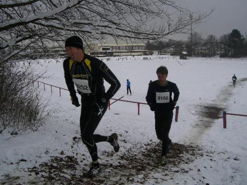 Leider fiel in der Nacht von Samstag auf Sonntag Schnee, so daß die Laufstrecke teilweise rutschig war und der Gripp auf dem Boden auch nicht der Beste war, aber daß ist eben Crosslauf. Aber es hätte schlechter sein können den die Teerstrecke war gerade am Anfang gut zu laufen.