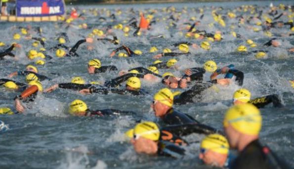 Die erste Startgruppe war bereits um 06:45 Uhr auf der Strecke, eingeleitet von Hells Bells von AC/DC fiel pünktlich um 07.00 Uhr der Startschuss für die große Masse. Außer zwei harten Schlägen auf den Kopf verlief das Schwimmen echt super, auch die Kraft war konstant da, so konnte ich obwohl ich ziemlich weit rechts gestartet war mit 57 Minuten aus dem Wasser steigen.