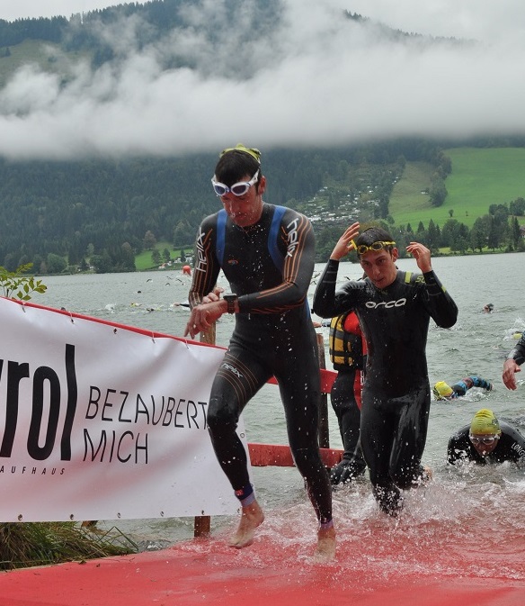 Um 09.20 Uhr fiel der Startschuss, noch bei trockenem Wetter im 17 Grad frischen Walchsee, top Panorama und sogar die Regenwolken, die sich zwischen den Bergen tummelten vollendeten das geile Berg Bild. Die 1,9 km lange Schwimmstrecke bewältigte ich wieder in einer für den Trainingsaufwand sehr guten Zeit und kam zumindest was die Altersklassen Athleten betrifft recht weit vorn mit aus dem Wasser.