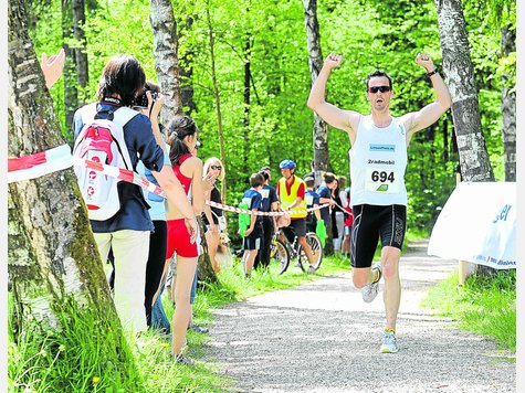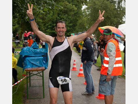 Am Sonntag war dann das Wetter kurz vor dem Start doch eher schlecht als recht und die 17 Grad Wasser Temperatur ließen doch einige Körperteile schrumpfen :-) egal Augen zu und durch auch ohne Neo der war nämlich nicht erlaubt und alle hatten die gleichen Bedingungen. Das Schwimmen beendete ich nicht schlecht als dritter aus dem Wasser wobei ich die Platzierung erst auf den letzten 100 Metern klar machen konnte. Mit einem schnellen Wechsel schwung ich mich dann auf mein Moutainbike, nachdem ich letzte Woche an meinem Crossrad das Schaltwerk geschrottet habe. So ging ich doch als erster auf die 18 km lange Radstrecke entlang dem Lechwehr (Schotterpieste) wurde aber nach ca. 5 Minuten von 2 Athleten, die in Teamwork auf ihren Crossrädern heran brausten gestellt. Beide waren mir bereits vom Nachtlauf bekannt und ich mußte also dran bleiben. So fuhren wir zu dritt zum Wendepunkt. Bei dem ersten Angriff konnte ich leider nicht gegenhalten und mußte einen Athleten ziehen lassen, so ging ich mit 25 Sekunden Rückstand als zweiter auf die 5 Kilometer lange Laufstrecke. Hier war aber die Laufform wie auf Knopfdruck wieder da und ich konnte mit großem Vorsprung als erster über die Ziellinie laufen und mit dem Sieg im Triathlon auch die Night and Day Champion Gesamtwertung gewinne, Also bis bald Bilder folgen noch Gruß Tom...