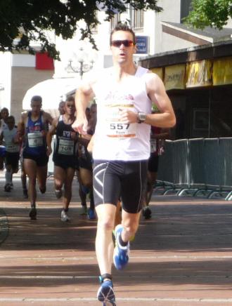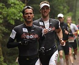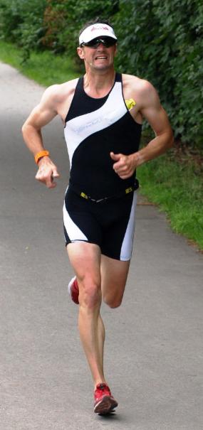 Danach eine kurze Schrecksekunde, als es mich zu Fuß in der Wechselzone gleich mal heftig zerlegt hatte aufgrund des rutschigen Bodens im Wechselbereich kein Wunde im hohen alter von 37 :-) Aufgerappelt und rein in die Schuhe ging ich hinter Steffen auf die Laufstrecke, der gleich ein hohes Tempo anging. Der bis dahin führende hatte eine super Radleistung abgelegt und hatte schon fast zwei Minuten Vorsprung. Aufgrund der guten Laufform und der 12 Kilometer langen Laufstrecke gab ich jedoch das Rennen noch nicht verloren und nahm die Beine in die Hand und drückte aufs Tempo.