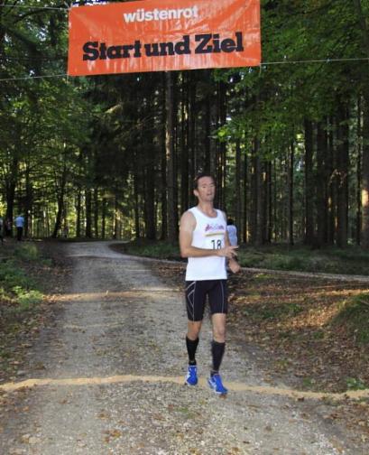 Nach dem Start war ich ganz schön motiviert und mußte mich erstmal bremsen sonst wäre ich alleine vorne weggerannt, so lief ich als zweiter über die Kuppe nach dem langgezogenen Berg und spürte gleich das heute nicht mein Tag war, zwar motiviert aber keine Kraft mehr lief ich nach ca. 1 Kilometer kurz mit Richard Negele mit, der mich nach einigen Metern dann doch erwartungsgemäß stehen ließ und so wurde ich auch gleich noch weiter druchgereicht. Um mich zu quälen war einfach keine Energie mehr da und ich haderte ganz schön mit mir selbst, anstatt mich auf das Rennen zu konzentrieren. Für die Knochen ist dieser Lauf mit Sicherheit nichts, da es bergab ganz schön zur Sache geht. So kam ich schlußendlich mit einer mäßigen Leistung auf Platz 11 ins Ziel , zumindest für einen Schlußsprint hat der Ehrgeiz dann doch noch gereicht, wenn man den Rückstand zur Spitze sieht, kann ich mit der Gesamtleistung aber nicht zufrieden sein.