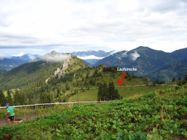Gott sei Dank spielte das Wetter kurz vor dem Start mit und die Sonne kämpfte sich den Weg durch die dunklen Wolken. Um 16.00 Uhr fiel der Startschuß für meinen ersten Berglauf, Kumpel Hotte, der sich schon des öfteren in diesem Terain bewegte, war auch mit dabei. So rannten wir gemeinsam die ersten Höhenmetern gen Gipfel. Kurze konzentrierte Schritte mit viel Kraft aus der Wade und viel Arbeit für die Leistengegend standen auf dem Programm. Bereits nach ca 2 Kilometer der Strecke hatte ich schon den faden Geschmack im Mund, wie nach einem 1000 Meter Anschlaglauf und so drosselte ich einwenig mein Tempo. An den richtigen Steilstücken (-20 %), an denen für mich ein schnelles Gehen unwesentlich langsamer war als das Laufen, konnte ich zwischendurch auch mal den schönen Ausblick genießen.
