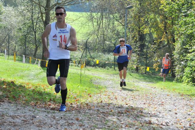 Die Streckenbeschreibung beschreibt bereits eindeutig, daß dies kein leichtes Läufchen war. Gleich nach dem Anpfiff übernahm wieder Bruno Schumi das Tempo. In den ersten zwei von 4 Runden wollte ich diesmal einwenig riskieren und ab und zu mal ein bischen anzupfen um wieder wichtige Tempohärte für die DPM Cross zu sammeln. Nach dem ersten knackigen Trail bergauf mitte der ersten Runde fühlte ich mich gut (wie noch wahrscheinlich jeder in der ersten Runde :-) und ging an Bruno Schumi vorbei, der konterte erwartungsgemäß gleich wieder und ich diesmal auch so ging es drei bis viermal hin und her und ich ließ diesmal nicht locker und blieb bis zum ende der ersten Runde vorn.