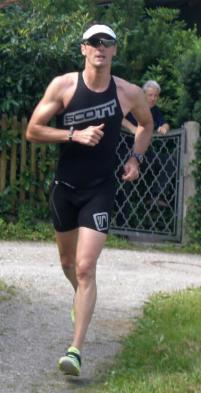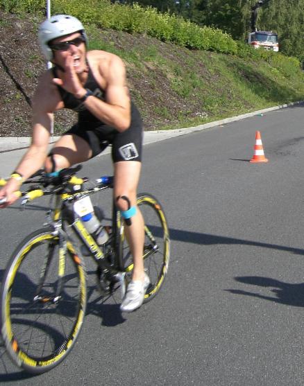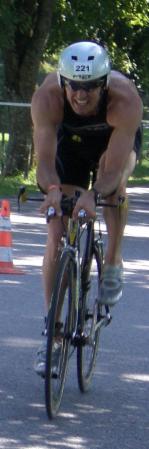 Gleich zu Anfang schlug ich ein hohes Tempo an und kam als 34 mit einem Rückstand von 1:32 auf meinen Teamkollegen Christian Brader aus dem Wasser. Mit einem schnellen Wechsel konnte ich wiedermal einige Athleten schon in der Wechselzone überholen und stieg gut platziert auf das Rad. Auf der sehr anspruchsvollen Radstrecke, die gerade durch steile Abfahrten mit enge Kurven und harten Anstiegen keine langeweile aufkommen ließ ging es heftig zur Sache.