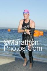 Da die Wassertemperatur 21 Grad anzeigte, wurde der Neoprenanzug verboten. Ich war gespannt auf das Schwimmen, an der Startlinie postierte ich mich nicht ganz vorn, was sich später als Fehler herausstellen sollte. Nach dem Startschuß versperrten mir zwei langsamer schwimmende Athleten den Weg zu einer schnelleren Gruppe und ich mußte mich alleine nach vorne kämpfen. Es lief alles gut und ich kam auch vor meinem Team Kollegen Ekki, der mich normaler weise immer auf der Hälfte der Strecke überholt mit 30 Sekunden Vorsprung aus dem Wasser. Endlich konnte ich das Schwimmen für mich mal wieder mit einem guten Gefühl beenden und auf mein Scott Plasma steigen.
