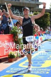 Beim Marathon ließ ich es aber langsam angehen, da ich wußte das ich auf der letzten Disziplin bisher noch nie ohne Spaziergang durchgekommen bin um nicht gleich am Anfang zu überzocken. Nach ca. 5 Kilometern und einer kurzen Pinkelpause hatte ich mich langsam eingelaufen und drückt das Tempo unter 5 Minuten pro Kilometer. Die Strecke war auch nicht einfach zu laufen, da es ziemlich viele Engstellen mit Gegenverkehr gab und auch drei heftige Steigungen eingebaut waren, diese galt es 5 mal zu überwinden, da die Laufstrecke in 5 Runden a 8,33 Kilometer aufgeteilt war. Henry Neugebauer mein Vereinskollege kam nach einer starken Radleistung (4:53) immer näher und lief bei Kilometer 20 auf mich auf und hatte noch gute Beine und ging sofort vorbei, ich hielt mein Tempo und versuchte nicht hoch zu gehen und auf keinen Fall anzuhalten. Henry platzte in der 3 Runde und mußte seinem schnellen Tempo tribut zollen und ich kam wieder näher so lief ich ende der 4 Runde wieder auf ihn auf und konnte vorbei gehen. Die 5 und letzte Runde setzte ich dann alles auf eine Karte und lief (quälte mich wie Sau) die schnellste aller Runden und konnte auch noch zwei besser platzierte Athleten einsammeln die immer langsamer wurden. So lief ich überglücklich und mit Gedanken alles Richtig gemacht zu haben als 13er bei einem Langdistanz-Triathlon über die Ziellinie. Was zur Krönung noch einen 3. Platz in der Altersklasse bedeutete.