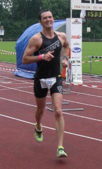 Auf der Laufstrecke lief es auch richtig gut, beim Wendepunkt betrug der Abstand bereits mehr als 500 Meter. Auch Ruppi kam mir so auf Platz 20 liegend entgegen und war noch guter Dinge bis zum Wendepunkt :-) . Ich lief das Tempo bis ins Ziel durch und so konnte ich mit 2 Minuten Vorsprung den Triathlon in Oberschleißheim wie auch im Vorjahr wieder gewinnen.