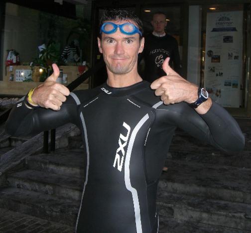 Mit einer Wunschplatzierung unter die ersten sechs zu kommen ging ich an den Start und versuchte zwei Wochen nach dem Ironman Lanzarote alles zu geben. Beim Schwimmen lief alles gut obwohl ich diese Disziplin den geringsten Stellenwert beim Taining in den letzten Monaten zukommen ließ, da der Ironman im Vordergrund stand. Ich stieg trotzdem mit den Favoriten für die vorderen Plätze aus dem Wasser.