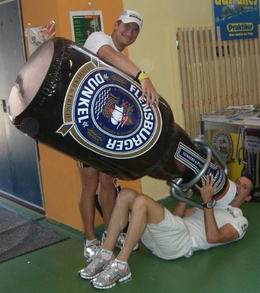 So hab ich besonders mir und auch einigen anderen bewiesen, das ich auch auf der Langstrecke zu einem guten Ergebnis fähig bin. Das war bisher der größte sportliche Erfolg für mich und stimmt mich positiv für die Zukunft. Also bis bald und danke an alle die mir die Daumen gedrückt haben (Hawaii irgendwann komm ich :-) , alles in allem war das ein super geiles Wochenende und eine riesen Gaudi, vielen Dank auch an Matthias, Henry, Steffi, Jörg, Maik, Ekki, Stefan, Rene und besonders an meine Frau Conny die wiedermal alles mitgemacht hat Gruß Tom .............