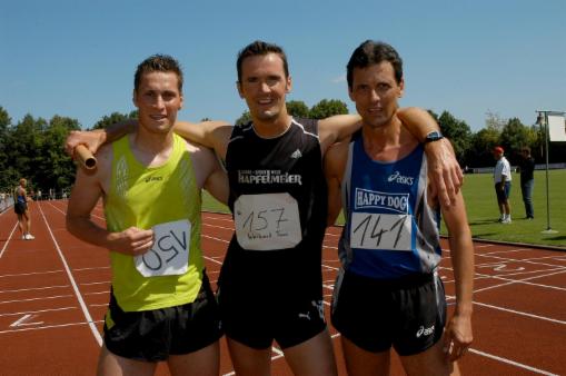 Die 3x1000 Meter Staffel: v.l Berni Lindner, Ich, Jürgen Bartsch